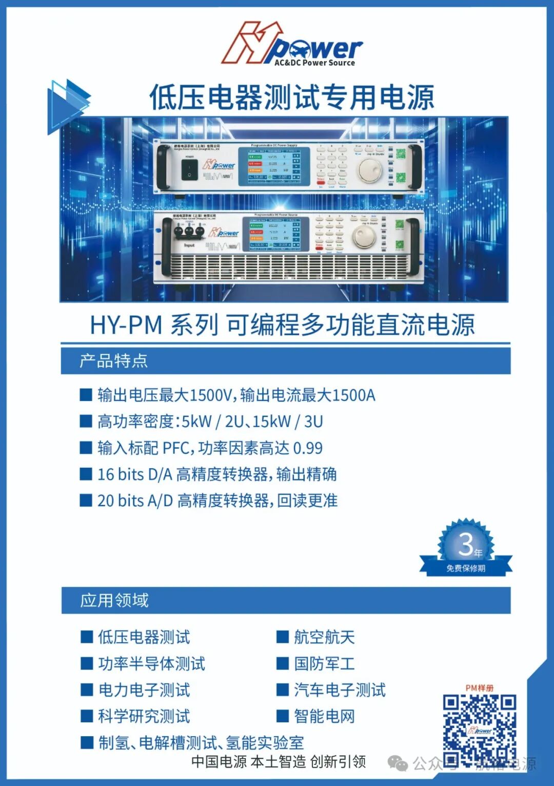 航裕電源HY-PM系列可編程多功能直流電源和HY-HP系列可編程大功率直流電源,功率密度高,單臺功率**可達15kW,輸出功率**可達2000kW,輸出電壓**2kV,輸出電流**30kA,擴展了電壓和電流的輸出范圍,能滿足直流馬達廣泛的測試需求,是實驗室研發(fā)、生產(chǎn)測試和品管等部門,是生產(chǎn)測試及質(zhì)量管控的首選產(chǎn)品。應用領域涵蓋汽車電子、綠色能源、高速測試、大功率測試等方面,功能豐富、性能優(yōu)異、適用廣泛。